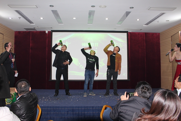 年會(huì )上受現場(chǎng)氣氛的感染,到場(chǎng)嘉賓踴躍參與互動(dòng),在固力士精心準備的互動(dòng)游戲中,數位嘉賓興致極高主動(dòng)上臺與固力士員工一起游戲。更有嘉賓在神秘節目《胖子很能吹》中主動(dòng)上臺要求比賽。